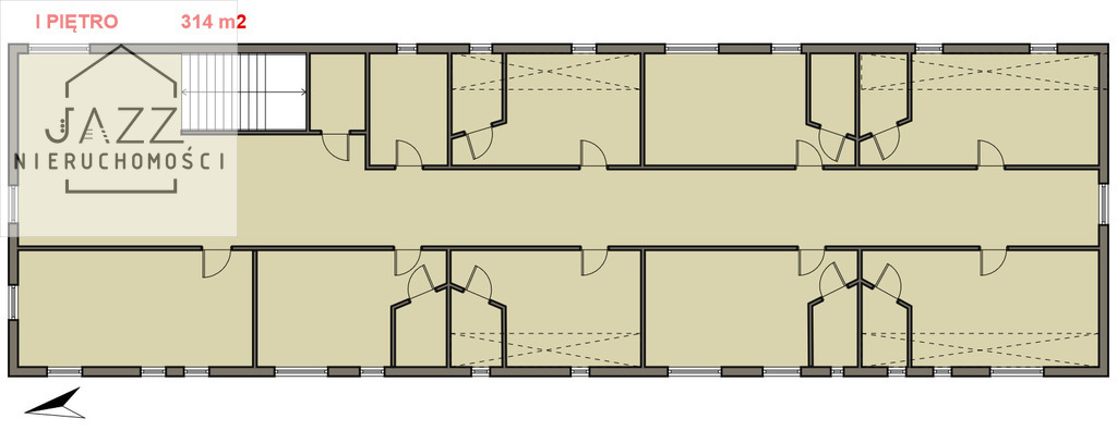 I Piętro: (ok. 254m2) pokoje wraz osobnymi łazienkami i toaletami,